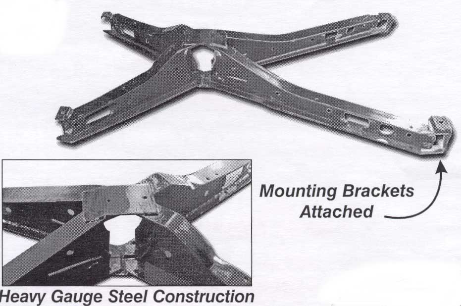 "X" Frame for 1955-57 Chevy convertibles. Duplicate of the original, includes all brackets, painted in primer black. Part No. 12748 $949.00